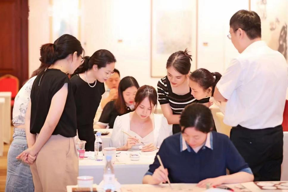 “現在越來越多的人關注團扇,團扇是中國傳統手工藝品,是門手藝活,要一步一步慢慢來”。在支行工作人員的介紹之下,大家拿起手中的工具,耐心跟隨指導老師的步驟,在紙上繪制自己喜歡的圖案,精心搭配裝飾在扇面上,一把把空白的團扇變成了絢麗多彩、花團錦簇的精致藝術品。