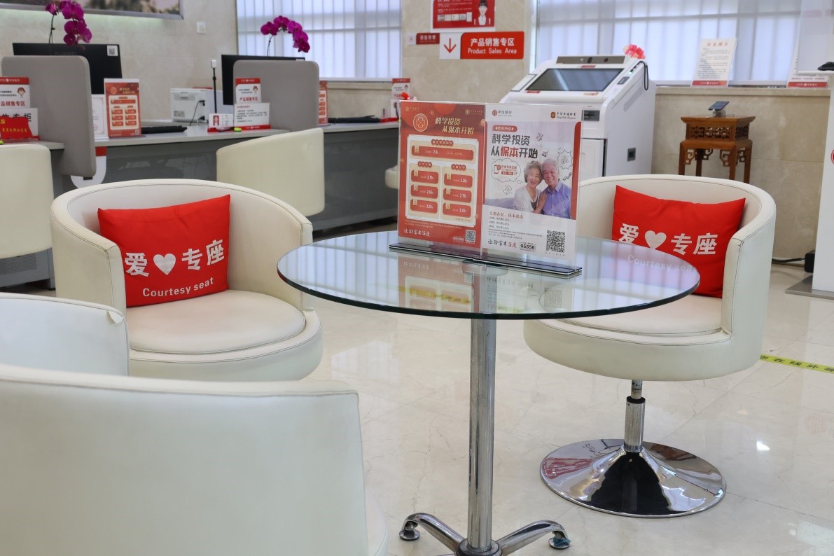 (圖為中信銀行網點廳堂設置的愛心專座)