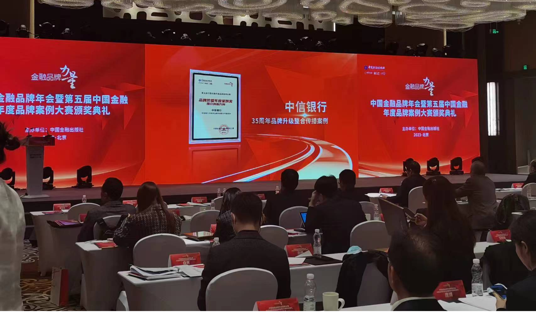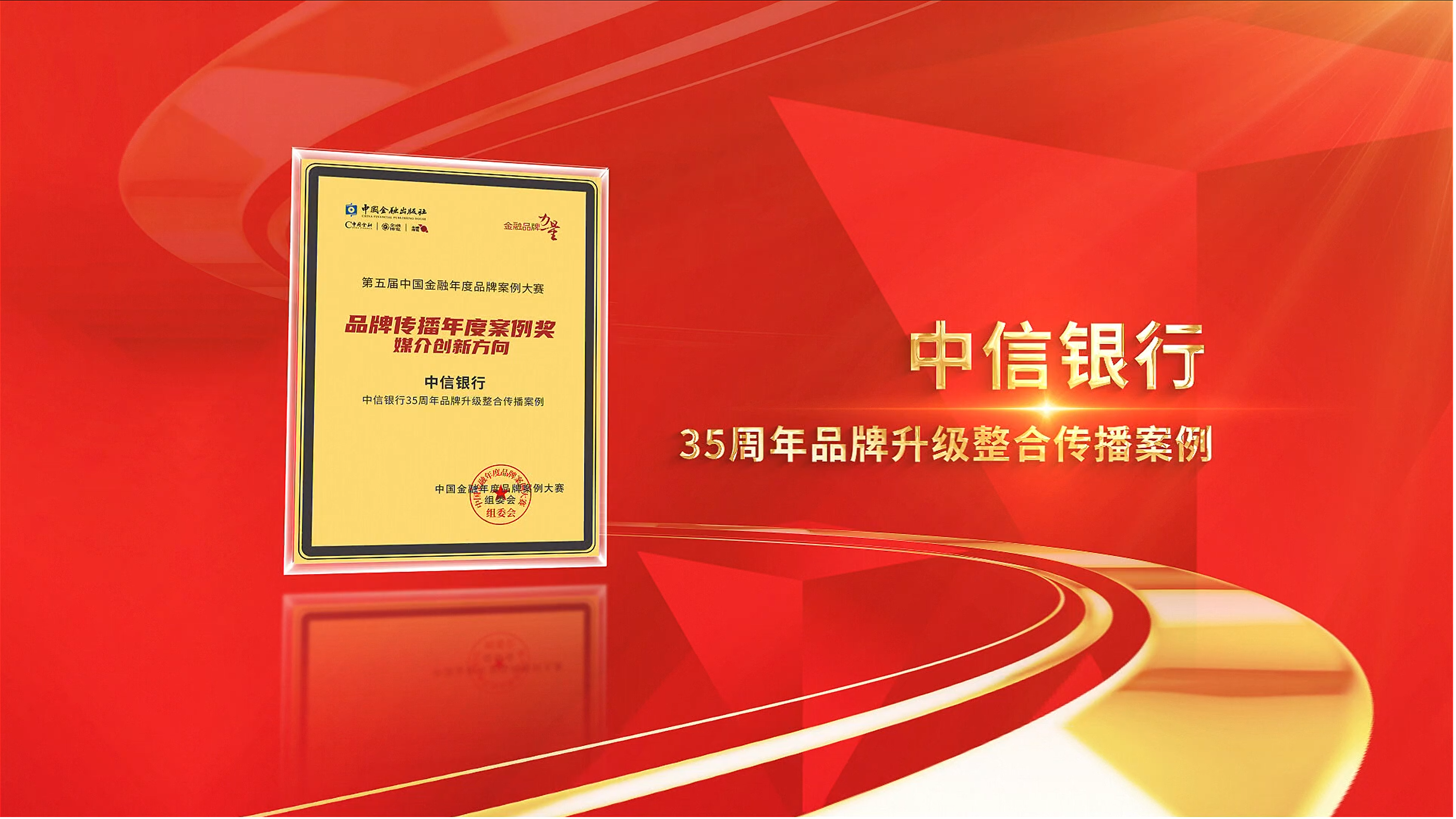 3月28日,由中國金融出版社主辦的中國金融品牌年會暨第五屆中國金融年度品牌案例大賽頒獎典禮在北京舉行。中信銀行首次參評,憑借“品牌煥新升級整合傳播案例”的出色表現,榮獲第五屆中國金融年度品牌案例大賽“品牌傳播年度案例獎”(媒介創新方向)。