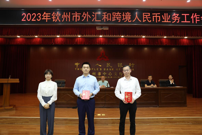 會議舉辦2023年欽州市跨境人民幣政策惠享便利宣傳活動啟動儀式暨2022年跨境人民幣業務服務示范點發布活動,中信銀行欽州分行憑借2022年跨境人民幣業務“首辦戶”優異的完成任務表現,獲頒“跨境人民幣業務‘首辦戶’服務示范點”榮譽牌匾,為欽州當地五家獲獎機構之一。